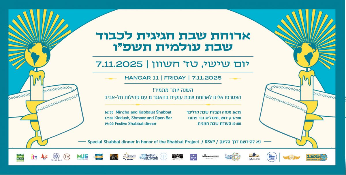 הצטרפו אלינו לארוחת שבת ענקית בהאנגר 11 יחד עם קהילות תל-אביב כחלק משבת עולמית